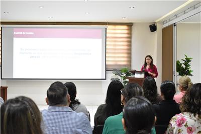 Durante su charla, la especialista resaltó la importancia de realizar de manera periódica la autoexploración mamaria, así como estudios como la mastografía y el ultrasonido, además de mantener hábitos de vida saludables para reducir riesgos a largo plazo.