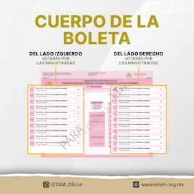 ACUERDO DEL CONSEJO GENERAL DEL INSTITUTO ELECTORAL DE TAMAULIPAS, POR EL QUE SE MODIFICA EL DISEÑO DE LA BOLETA DE LA ELECCIÓN DE MAGISTRATURAS DEL TRIBUNAL DE DISCIPLINA JUDICIAL A EMPLEARSE EN EL PROCESO ELECTORAL EXTRAORDINARIO 2024-2025 PARA LA ELECCIÓN DE PERSONAS JUZGADORAS DEL PODER JUDICIAL DE ESTADO DE TAMAULIPAS.
