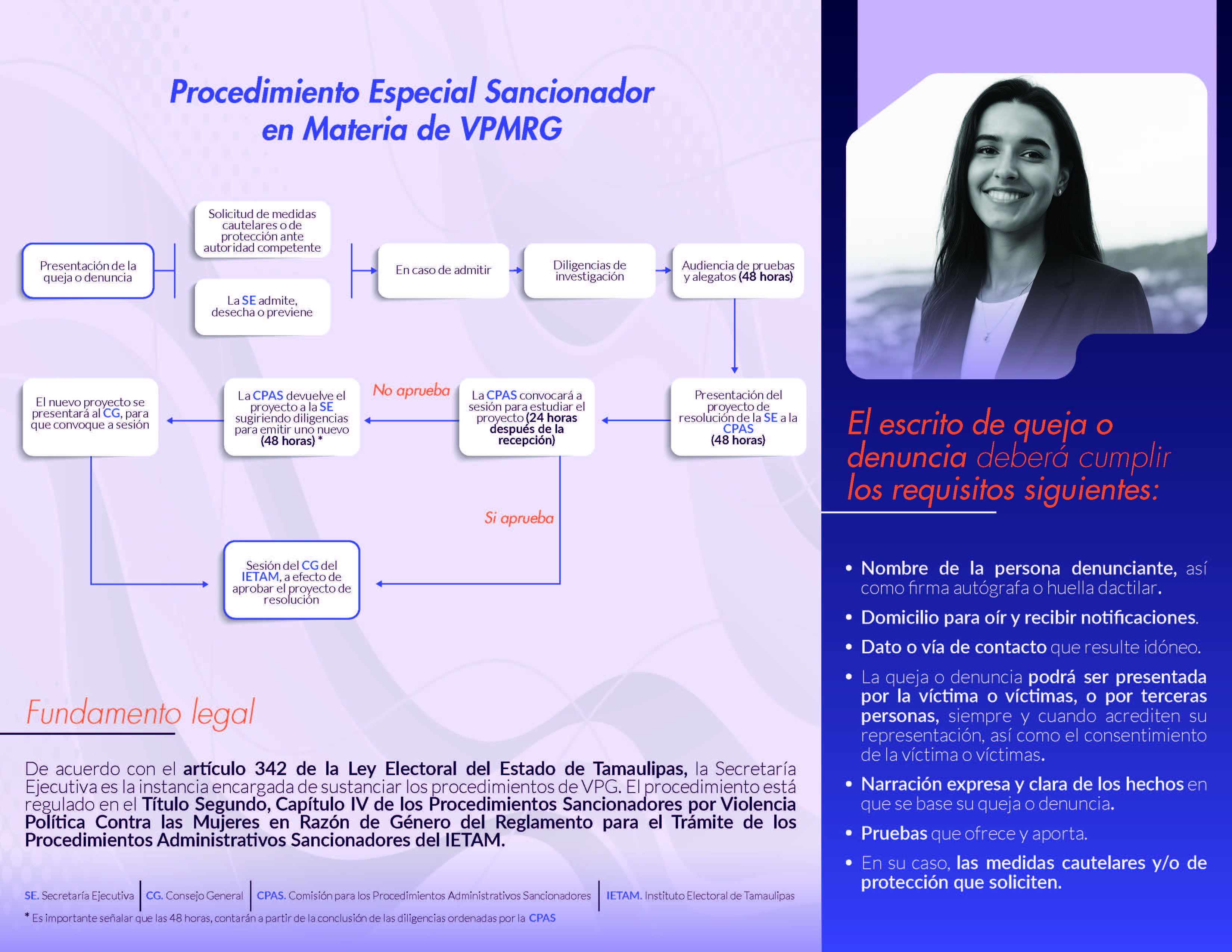 La Secretaría Ejecutiva del IETAM, instruirá el procedimiento especial sancionador, en cualquier momento, cuando se presenten denuncias, o de oficio hechos relacionados con violencia política contra las mujeres en razón de género, entre otras.