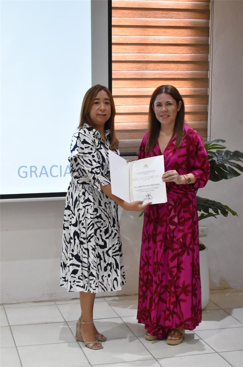 En su mensaje, la Consejera Electoral Mayra Gisela Lugo Rodríguez, Presidenta de la Comisión de Igualdad de Género y No Discriminación del IETAM, enfatizó la relevancia de que el personal del Instituto se mantenga informado y consciente sobre temas de salud que impactan directamente en la vida de las mujeres.