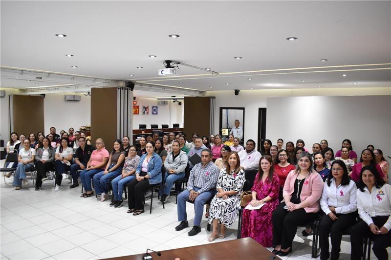 La conferencia se llevó a cabo en la Sala de Capacitaciones del Instituto, con el objetivo de sensibilizar al personal sobre la importancia de la detección oportuna del cáncer de mama y fomentar una cultura de autocuidado. Durante su intervención, la Dra. Martínez destacó que muchas veces las alteraciones no son visibles a simple vista, sino que se manifiestan a nivel microscópico, por lo que la detección temprana es fundamental para un tratamiento eficaz.