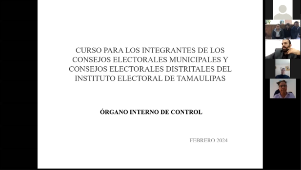 En el marco del desarrollo del Proceso Electoral Ordinario 2023-2024, el Maestro Raul Robles Caballero, Titular del Órgano Interno de Control del Instituto Electoral de Tamaulipas, a través de una videoconferencia virtual en la cual estuvieron presentes las personas titulares de las Presidencias, consejerías y secretarías de los 43 Consejos Municipales y 22 Distritales Electorales, participó como expositor en el curso “Responsabilidades administrativas de los servidores públicos y declaración patrimonial y de intereses”.