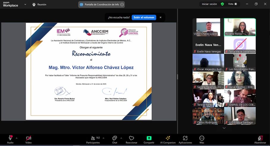 La participación en esta actividad forma parte de los esfuerzos del OIC para mantenerse actualizado y alineado con las mejores prácticas en materia de control interno, transparencia y buen gobierno, así mismo refleja el compromiso institucional del IETAM con la transparencia, la ética pública y la consolidación de una democracia confiable, donde el ejercicio de los recursos y la rendición de cuentas sean pilares fundamentales del quehacer electoral.