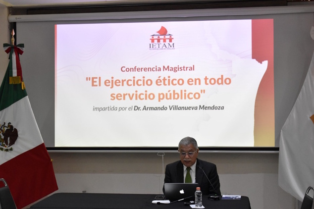 En el marco de las actividades de capacitación que deberán llevarse a cabo por parte el Comité de Ética, durante el evento, el personal del Órgano Interno de Control hizo entrega de un ejemplar impreso del Código de Ética a todo el personal del Instituto, destacando además, que se contó con la participación como conferencista invitado del Mtro. Armando Villanueva Mendoza, Director de la Casa de la Cultura Jurídica de Cd. Victoria de la Suprema Corte de Justicia de la Nación, quien impartió una conferencia denominada “El ejercicio ético en todo servicio público”, la cual fue de gran valor para impulsar la formación de la conciencia ética en todos los niveles del funcionariado del Instituto Electoral de Tamaulipas.