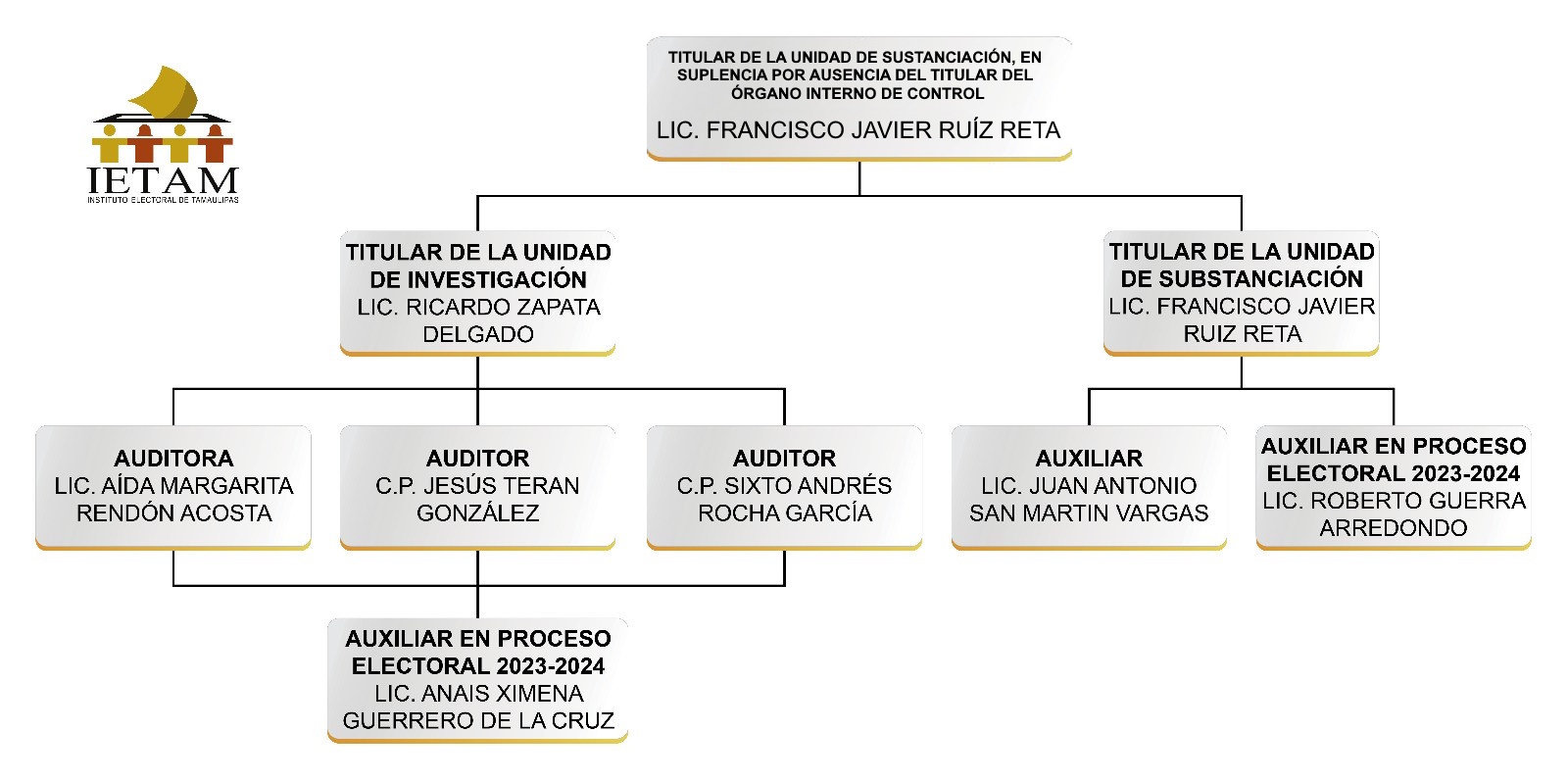 En el marco del desarrollo del Proceso Electoral Ordinario 2023-2024, el Maestro Raul Robles Caballero, Titular del Órgano Interno de Control del Instituto Electoral de Tamaulipas, comisionó al C.P. Jesus Teran Gonzalez, Auditor Operativo y al Lic. Juan Antonio San Martin Vargas, Auxiliar Substanciador, para participar en los actos de Entrega Recepción Inicial de los 43 Consejos Municipales y 22 Consejos Distritales Electorales.