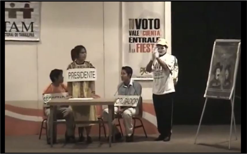 El objetivo de las obras de teatro, caracterizada por jóvenes, es promover la educación cívica y fomentar mediante artes escénicas la participación a nivel básico y medio superior, en materia político electoral, así como promover los valores democráticos y construir una ciudadanía responsable e informada.