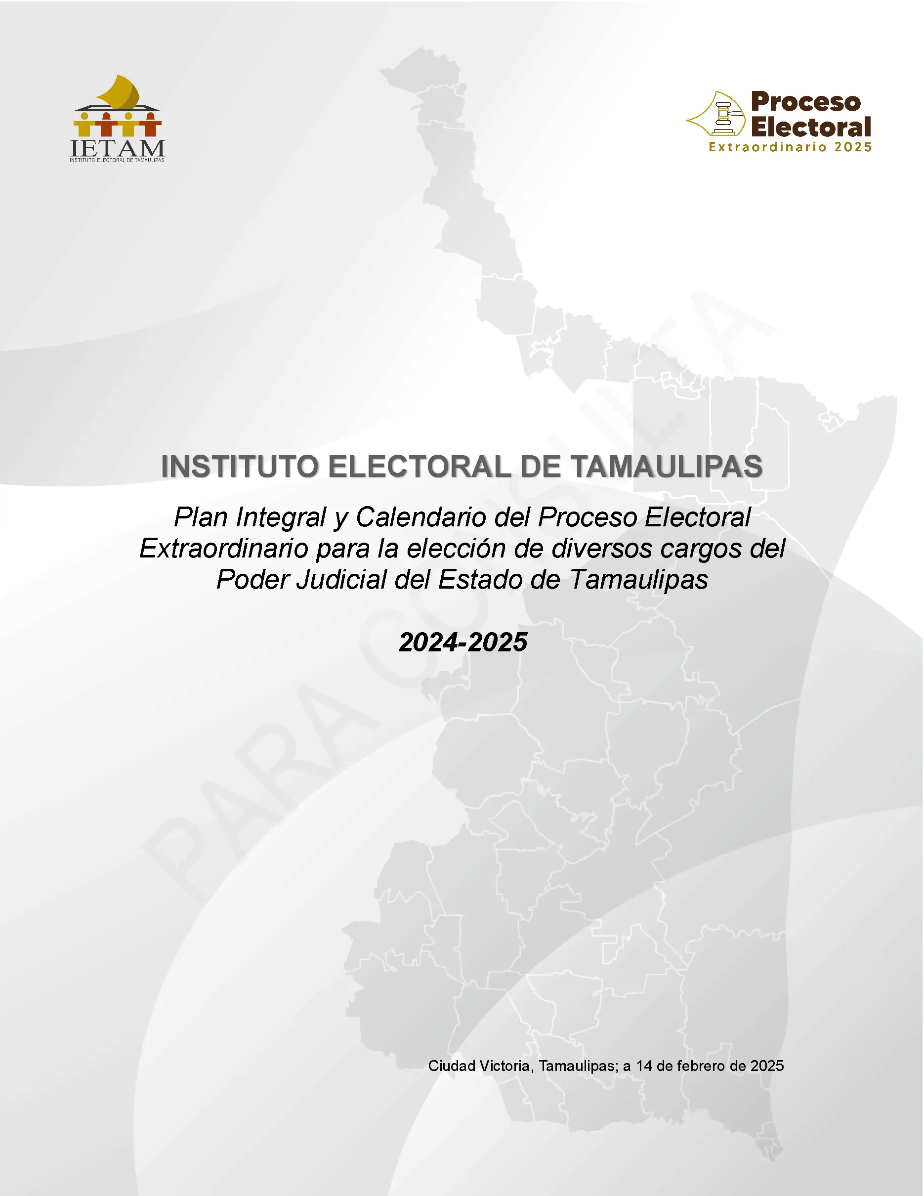 Plan Integral y Calendario del Proceso Electoral Extraordinario para la elección de diversos cargos del Poder Judicial del Estado de Tamaulipas 2024-2025