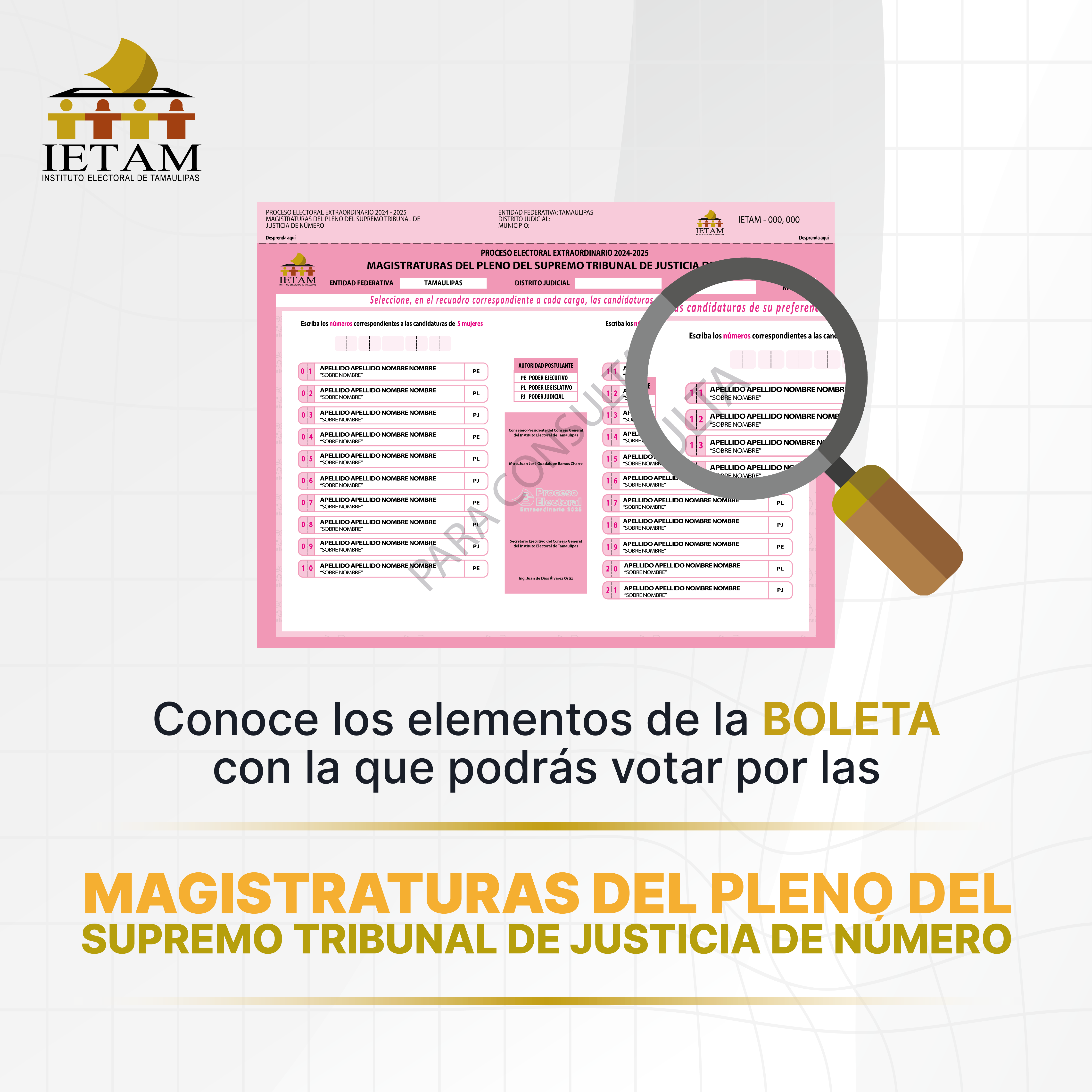 ACUERDO DEL CONSEJO GENERAL DEL INSTITUTO ELECTORAL DE TAMAULIPAS, POR EL QUE SE MODIFICA EL DISEÑO DE LA BOLETA DE LA ELECCIÓN DE MAGISTRATURAS DEL TRIBUNAL DE DISCIPLINA JUDICIAL A EMPLEARSE EN EL PROCESO ELECTORAL EXTRAORDINARIO 2024-2025 PARA LA ELECCIÓN DE PERSONAS JUZGADORAS DEL PODER JUDICIAL DE ESTADO DE TAMAULIPAS.